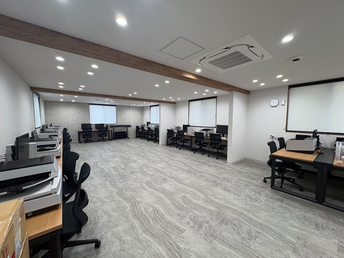 建物も、デスクも、椅子も、スキャナーやパソコンも、すべてが新品。